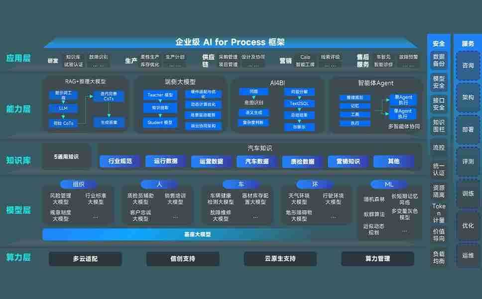 端到端的一站式AI工作空间深度融合了从企业战略规划到日常经营的全流程业务板块,,,定向解决车企内部领域多、、、、部门多、、链条长、、场景碎片化等难题,,,,支持车企快速构建以AI为核心的生产力写作体系,,,,实现任务执行与AI能力的无缝集成与交互