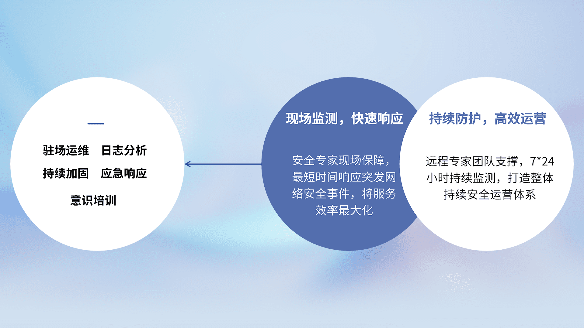 7X24小时持续监测安全事件,保持安全策略有效性,降低资产脆弱性风险,,,,精准拦截黑客攻击,,,,减少被黑客利用的机会,,第一时间遏制,,降低损失。。。